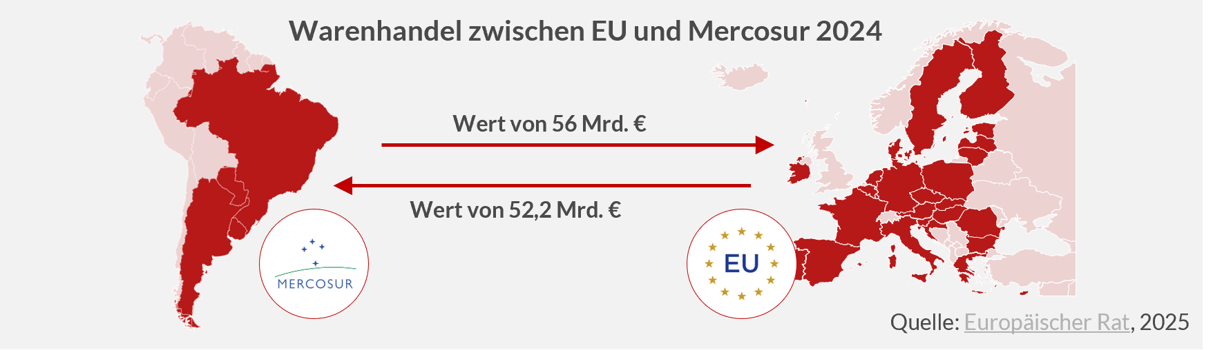 Der Europäische Rat hat am Freitag dem Mercosur-Freihandelsabkommen zugestimmt. Die geplante Freihandelszone mit mehr als 700 Millionen Einwohnern gilt als die größte dieser Art. Vorgesehen ist der beidseitige schrittweise Abbau von Zöllen auf über 90 Prozent der gehandelten Waren und die Anpassung von Einfuhrquoten. Schutzklauseln sollen potenzielle Marktstörungen verhindern. Die Unterzeichnung des Abkommens ist für den 17. Januar vorgesehen. Das Europäische Parlament muss dem Abkommen noch zustimmen.