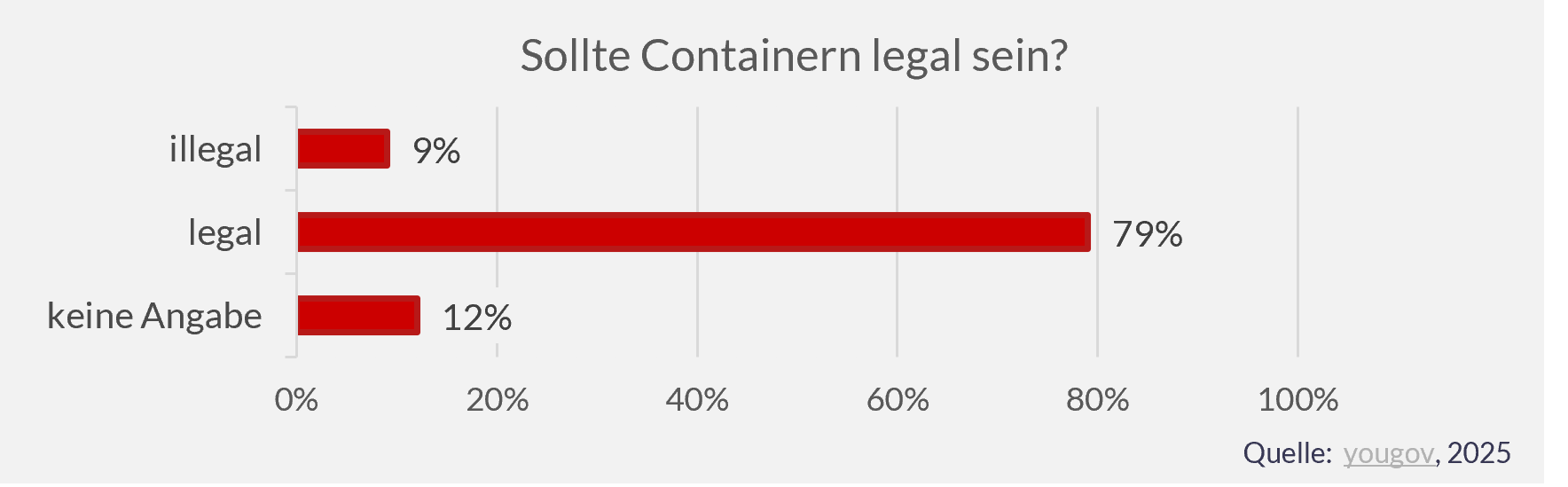 Aus Sicht der SPD sei es nicht mehr zeitgemäß, Lebensmittelrettung strafrechtlich zu verfolgen. NGOs werten die Legalisierung von Containern als Beitrag gegen Verschwendung. Der Aufwand bei Spenden gelte jedoch als Hürde. Befürworter sehen in jeder geretteten Ware einen Beitrag zu Ressourcenschonung und sozialer Gerechtigkeit. Als ergänzende Maßnahme wird die Abschaffung des Mindesthaltbarkeitsdatums bei lang haltbaren Produkten diskutiert.