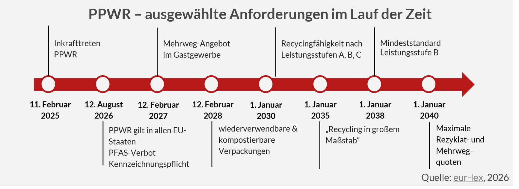 Die Leitlinien und FAQ zur EU-Verpackungsverordnung (PPWR) schaffen Klarheit in zentralen Auslegungsfragen. Mit Blick auf die erste Frist im August entsteht für betroffene Unternehmen dennoch ein zunehmend engeres Zeitfenster, um bestehende Unsicherheiten zu adressieren und notwendige Anpassungen umzusetzen. Gefordert ist nun ein zielorientiertes Vorgehen, um regulatorische Anforderungen rechtzeitig in ihre Prozesse zu überführen.