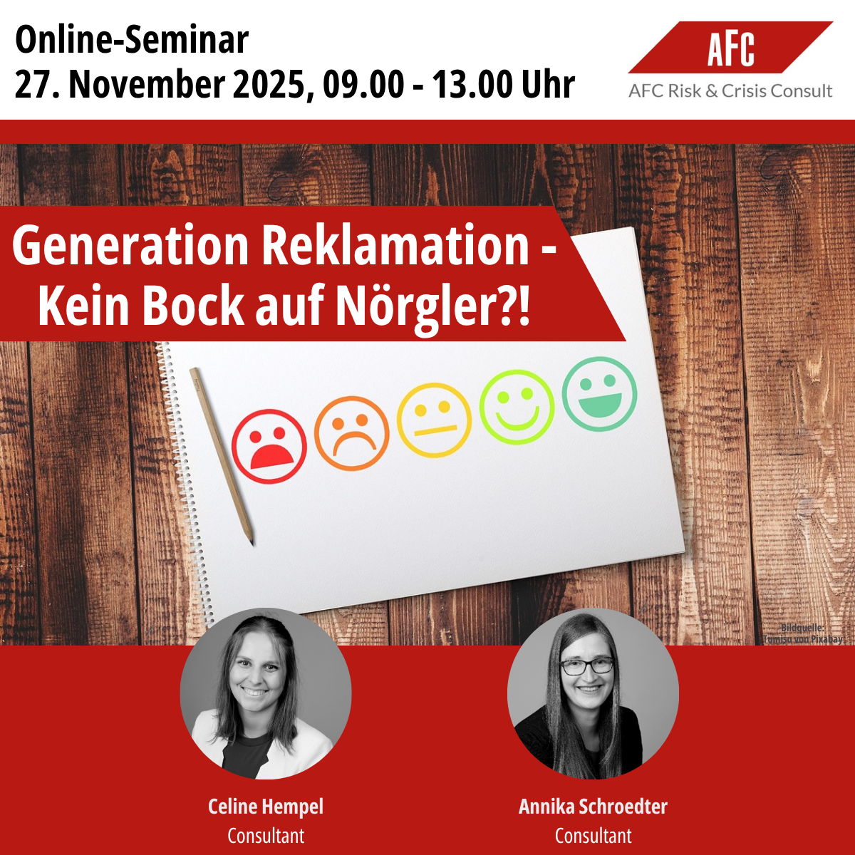 In unserem kompakten Online-Seminar „Generation Reklamation – Keine Lust auf Nörgler?!“ geben wir praxisnahe Einblicke und zeigen, wie sich Reklamationen professionell, empathisch und stakeholderspezifisch bearbeiten lassen – auch wenn es mal unangenehm wird.